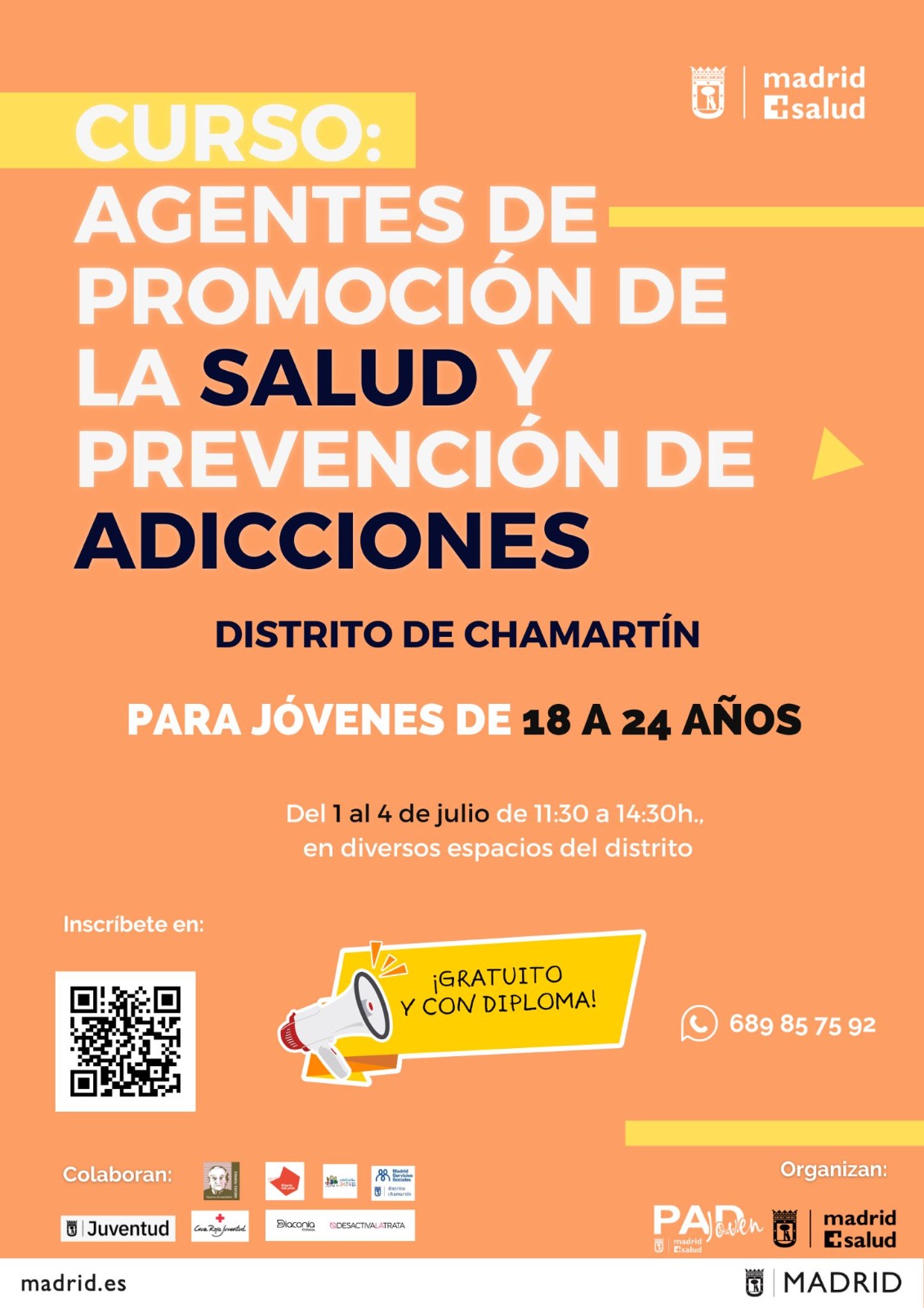 🙌 ¡Ya están abiertas las inscripciones para el curso de Chamartín de Agentes de Promoción de la Salud y Prevención de Adicciones que organiza Madrid Salud junto a los recursos sociales más presentes en el distrito‼️